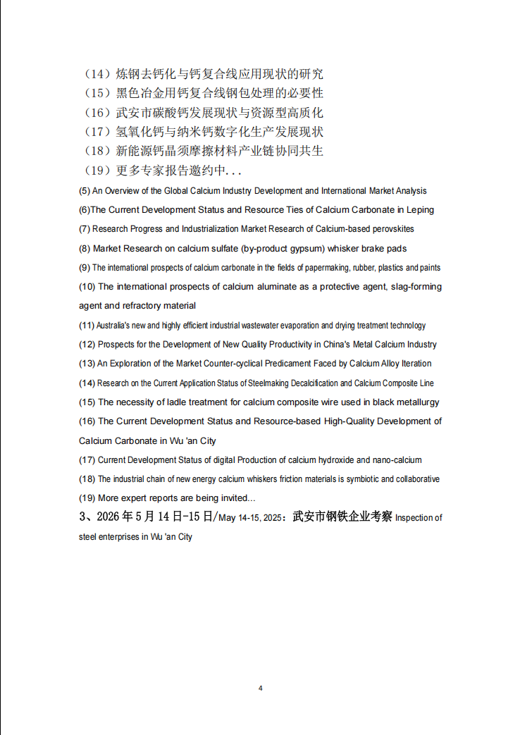For this reason, our association has decided to hold the "21st China Metal Calcium Industry Annual Conference and the Most Influential Brand Selection Activity" in Handan City, Hebei Province from May 12th to 15th, 2026. The specific matters are hereby explained as follows.