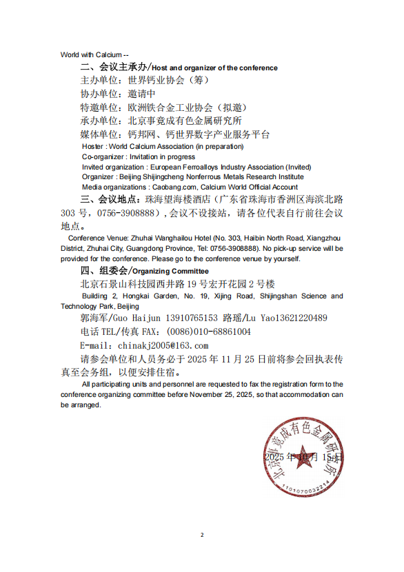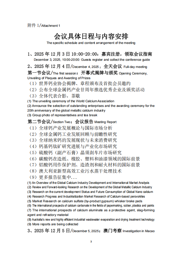 So, it has been decided to hold the "First World Calcium Industry Conference" in Zhuhai from December 2nd to 5th, 2025. The specific matters are hereby explained as follows.