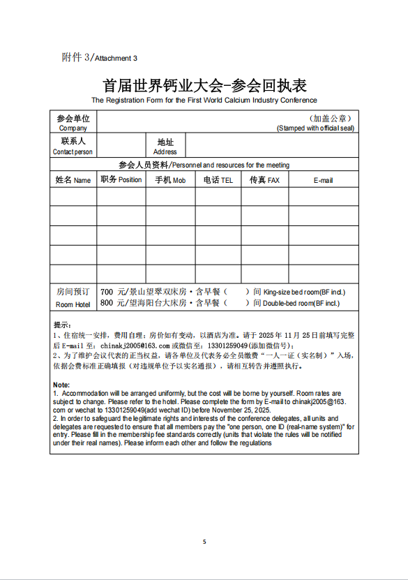 因此,决定于 2025 年 12 月 3 日~5 日在珠海召开“首届世界钙业大会”。现将具体事项说明如下。