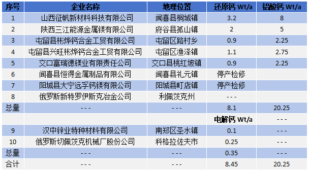 表1 2025年世界金属钙及铝酸钙(副产品)总产量