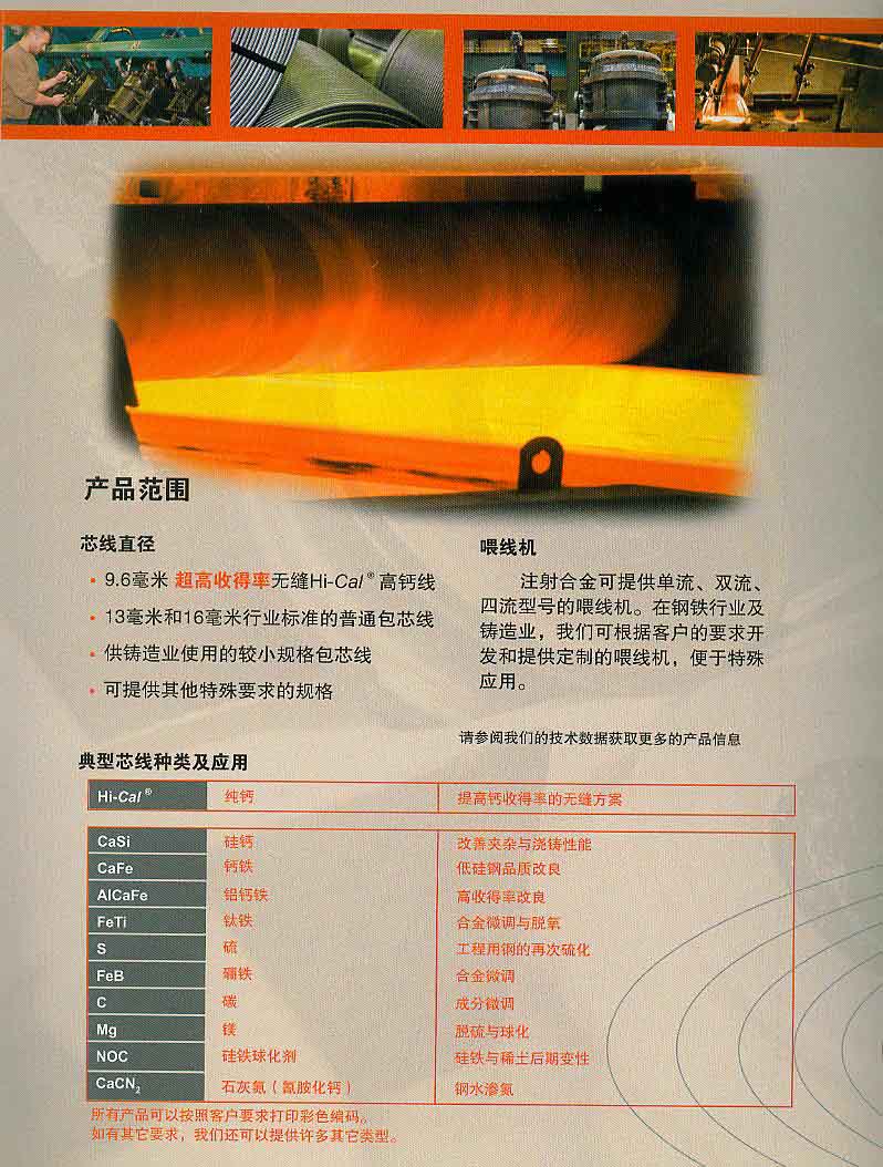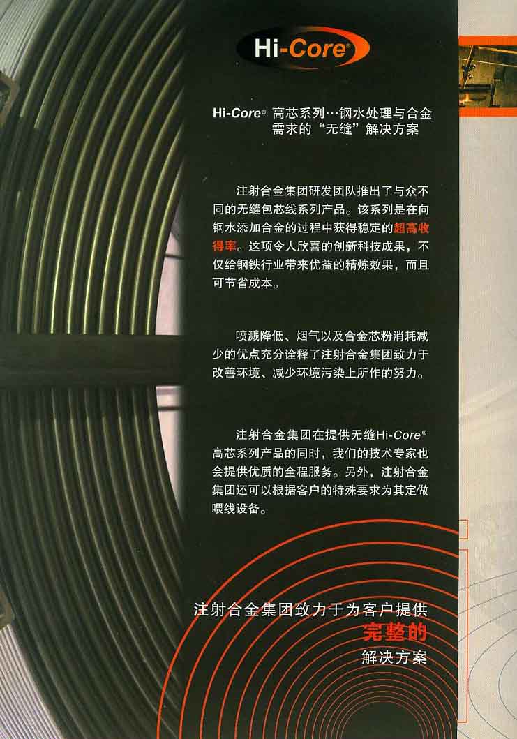天津注射合金公司引进英国技术,2007年在天津设立生产线无缝焊接钙粒包芯线生产系统,并注册自己的专利技术,在一段时间内受到国内钢厂的欢迎与热捧。但好景不长,随着我国纯钙丝的问世,加之无缝焊接技术被攻关,我国的包芯线自主生茶技术趋于成熟,并广泛应用于炼钢企业,在市场销售和价格的双重压力下,注射合金的市场份额越来越小,最终淡出市场。
